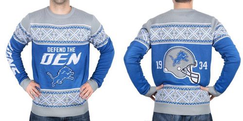 Nike Lions #81 Calvin Johnson Blue/Grey Men's Ugly Sweater