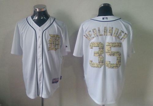 Tigers #35 Justin Verlander White USMC Cool Base Stitched MLB Jersey