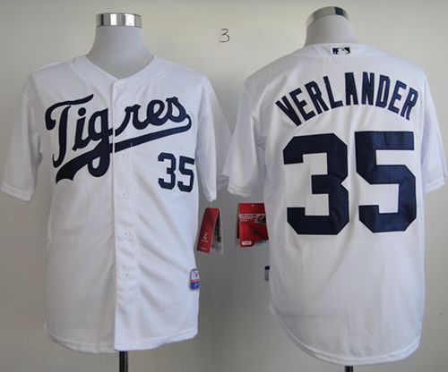 Tigers #35 Justin Verlander White Home Los Tigres Stitched MLB Jersey