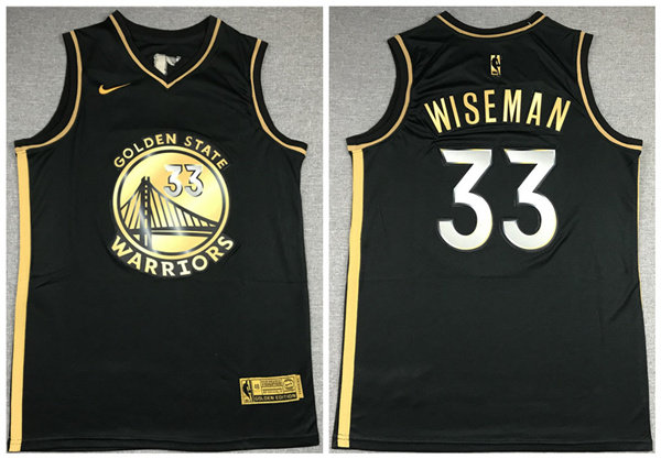 Men's Golden State Warriors #33 James Wiseman Black Gold Edition Stitched Jersey