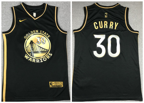 Men's Golden State Warriors #30 Stephen Curry Black Gold Edition Stitched Jersey