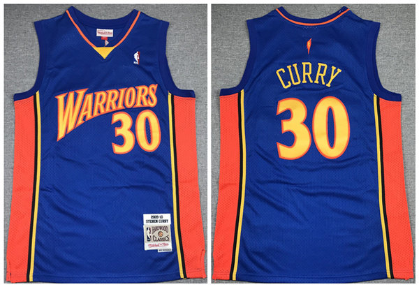 Men's Golden State Warriors #30 Stephen Curry Blue 2009-10 Throwback Stitched NBA Jersey