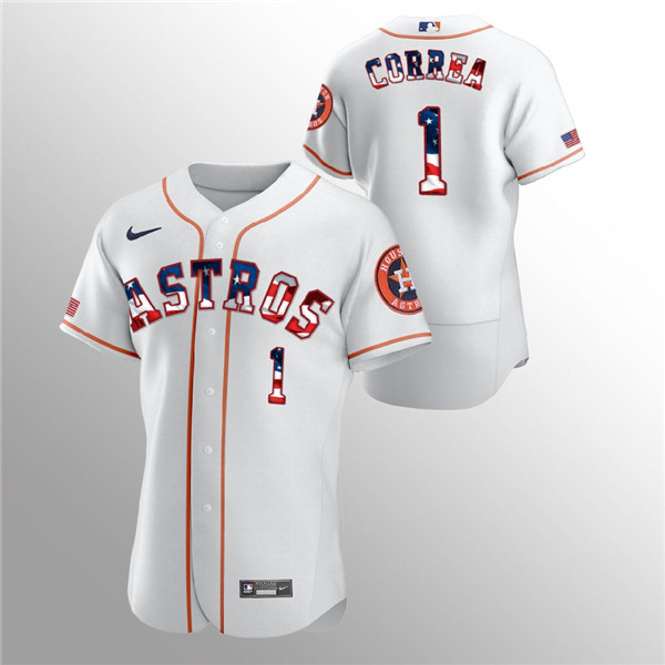 Men's Houston Astros #1 Carlos Correa White 2020 Stars & Stripes Flex Base Stitched Jersey