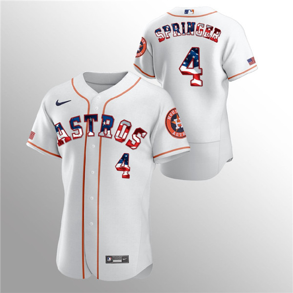 Men's Houston Astros #4 George Springer White 2020 Stars & Stripes Flex Base Stitched Jersey