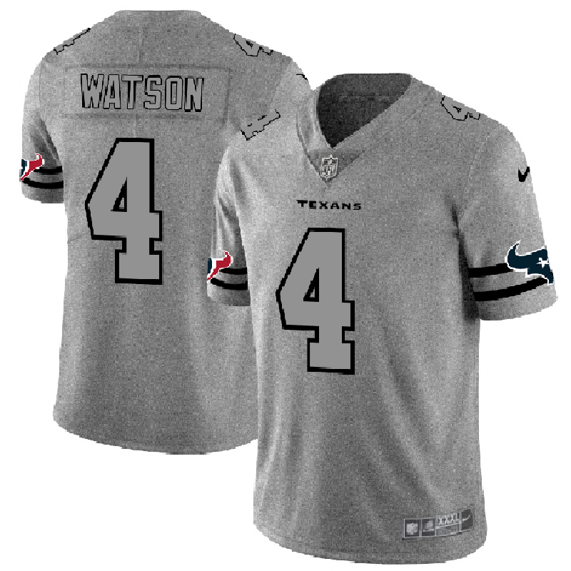 Men's Houston Texans #4 Deshaun Watson 2019 Gray Gridiron Team Logo Limited Stitched NFL Jersey