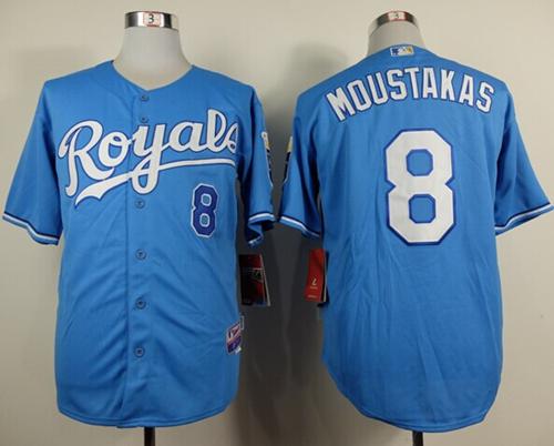 Royals #8 Mike Moustakas Light Blue Alternate 1 Cool Base Stitched MLB Jersey