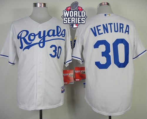 Royals #30 Yordano Ventura White Cool Base W/2015 World Series Patch Stitched MLB Jersey