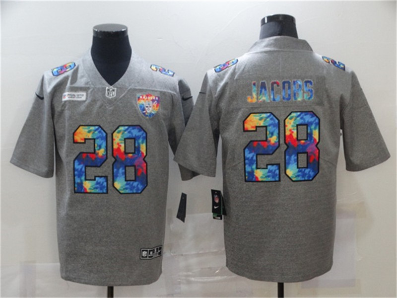 Men's Las Vegas Raiders #28 Josh Jacobs 2020 Grey Crucial Catch Limited Stitched Jersey