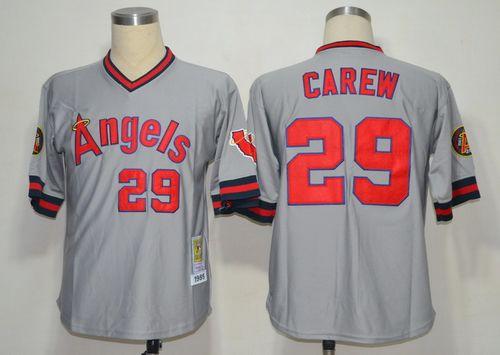 Mitchell And Ness 1985 Angels of Anaheim #29 Rod Carew Grey Stitched Throwback MLB Jersey