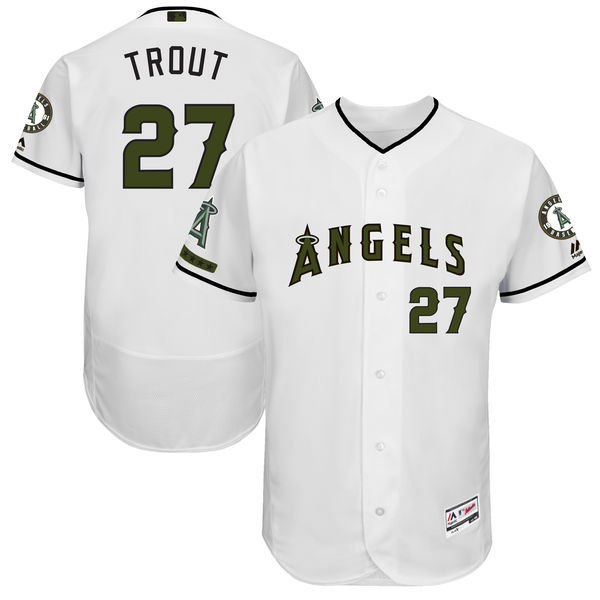Men's Los Angeles Angels of Anaheim #27 Mike Trout Majestic White 2017 Memorial Day Authentic Collection Flex Base Player Stitched MLB Jersey