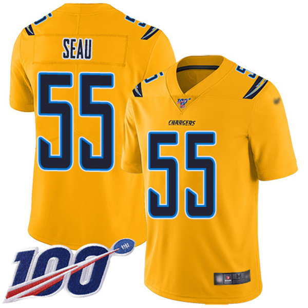 Men's Los Angeles Chargers #55 Junior Seau 2019 Gold 100th Season Inverted Legend Stitched NFL Jersey