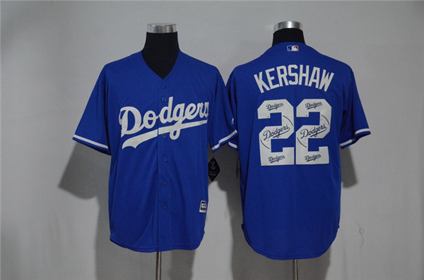 Men's Los Angeles Dodgers #22 Clayton Kershaw Blue Team Logo Print Cool Base Stitched MLB Jersey
