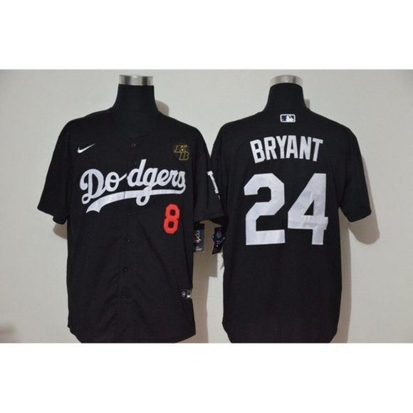 Men's Los Angeles Dodgers #24 Kobe Bryant Black KB Patch Cool Base Stitched Jersey