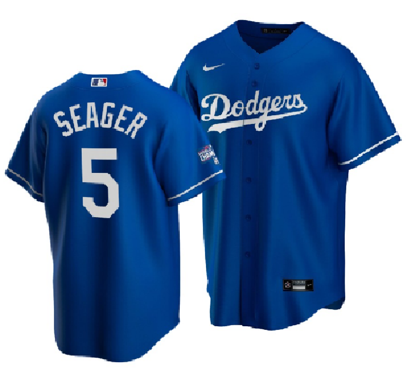 Men's Los Angeles Dodgers #5 Corey Seager Royal 2020 World Series Champions Home Patch Cool Base Stitched Jersey
