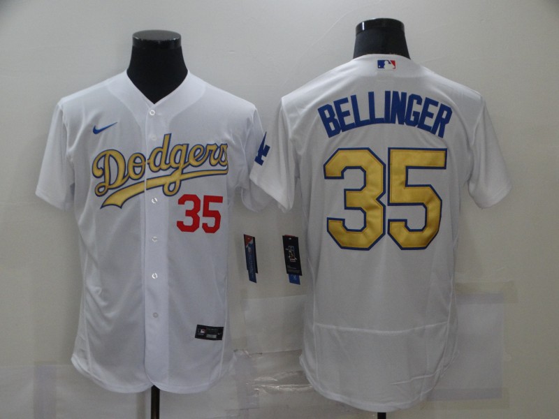 Men's Los Angeles Dodgers #35 Cody Bellinger 2021 White Gold Sttiched Jersey