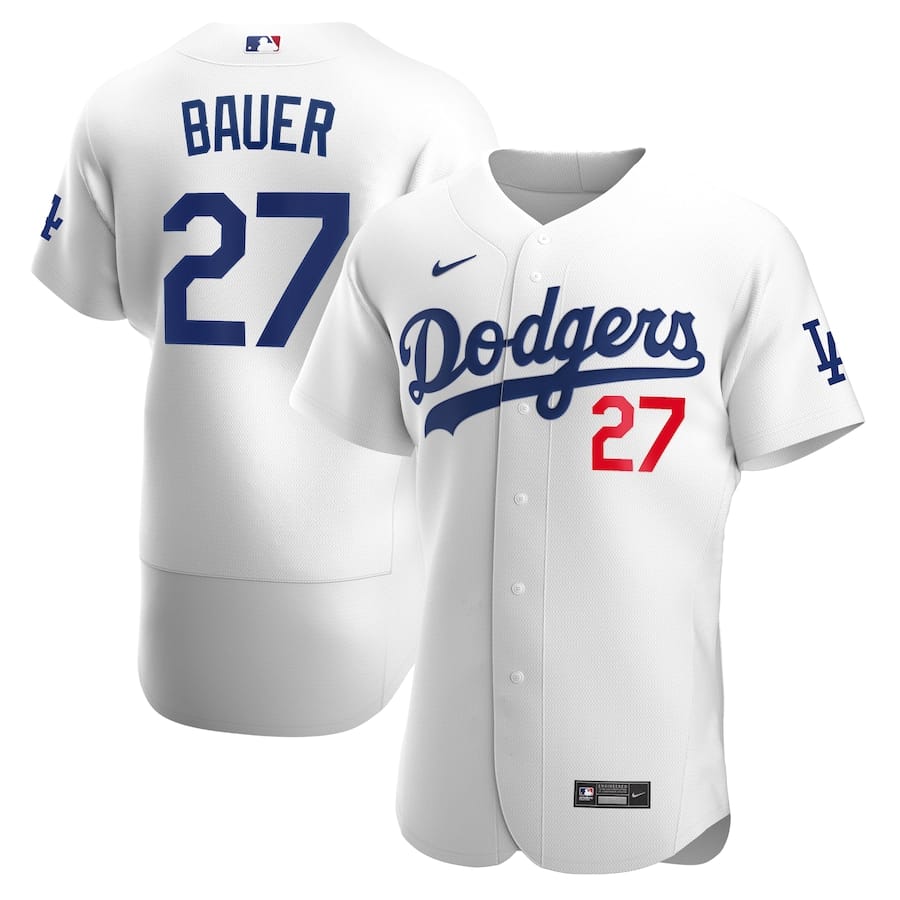 Men's Los Angeles Dodgers #27 Trevor Bauer White flex base Sttiched Jersey