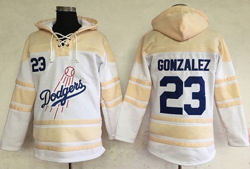 Dodgers #23 Adrian Gonzalez White Sawyer Hooded Sweatshirt MLB Hoodie