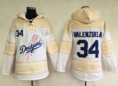 Dodgers #34 Fernando Valenzuela White Sawyer Hooded Sweatshirt MLB Hoodie