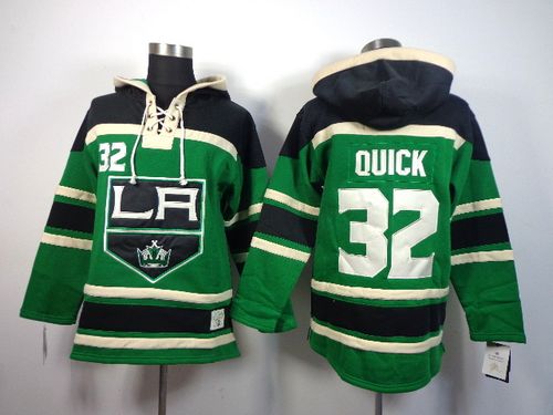 Kings #32 Jonathan Quick Green St. Patrick's Day McNary Lace Hoodie Stitched NHL Jersey