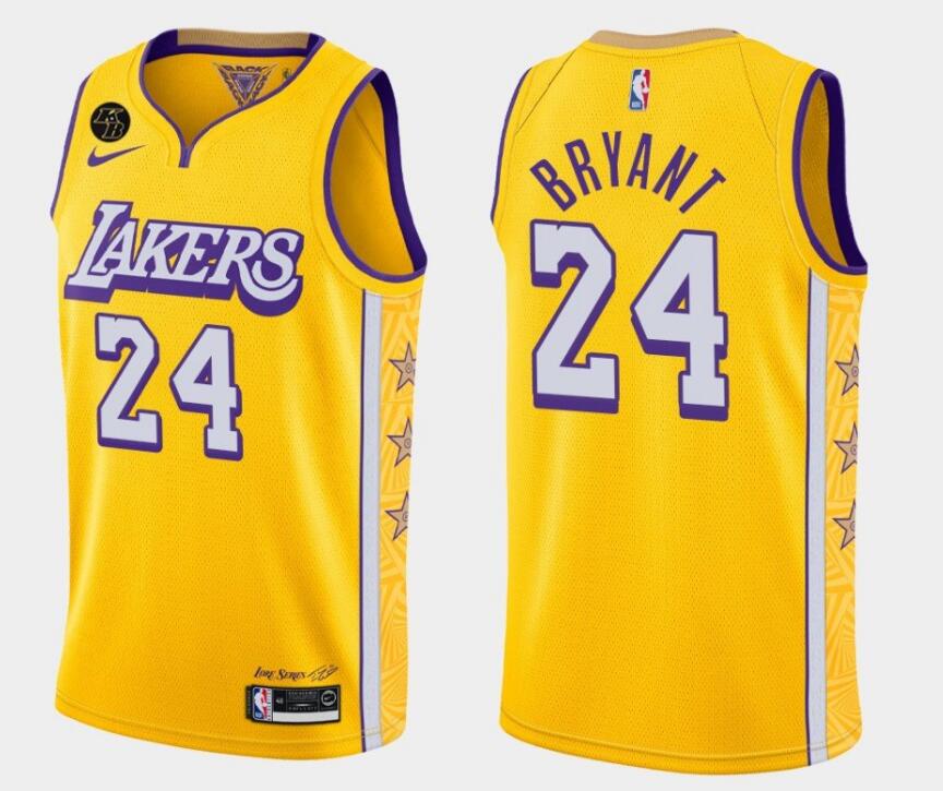Men's Los Angeles Lakers #24 Kobe Bryant With Kobe Patch Gold Stitched Jersey