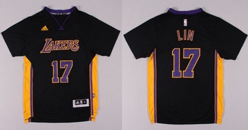 Revolution Lakers #17 Jeremy Lin Black(Purple NO.) Stitched NBA Jersey