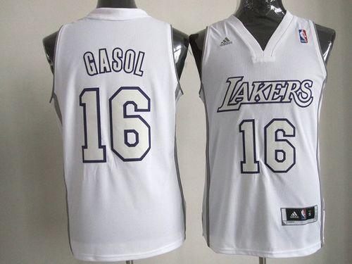 Revolution 30 Lakers #16 Pau Gasol White Stitched NBA Jersey