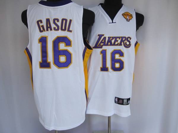 Lakers #16 Pau Gasol Stitched White Final Patch NBA Jersey