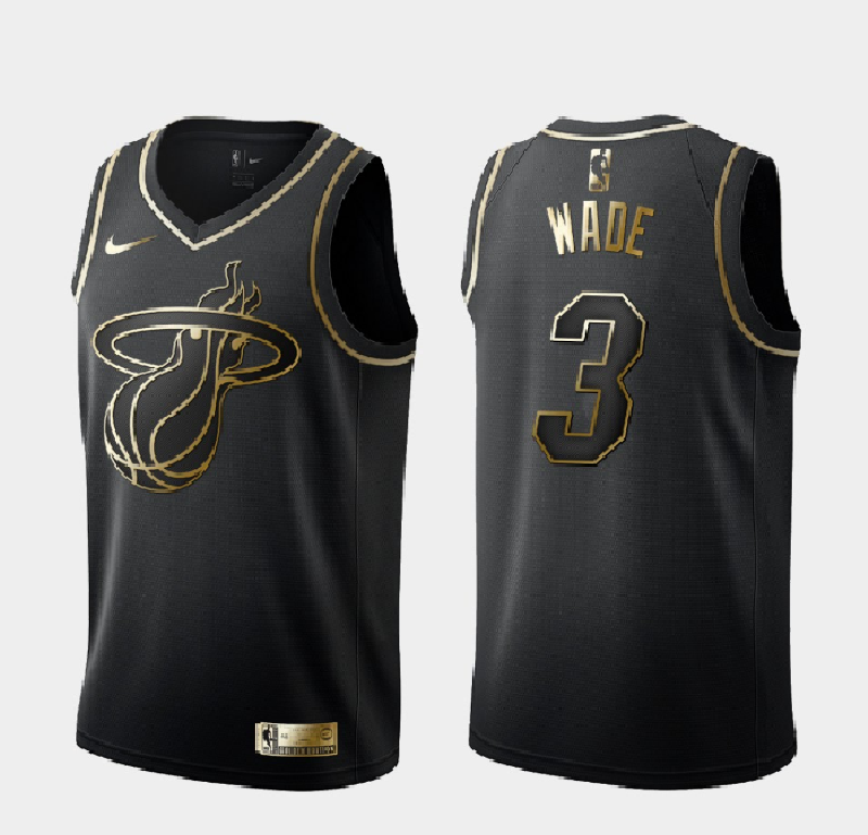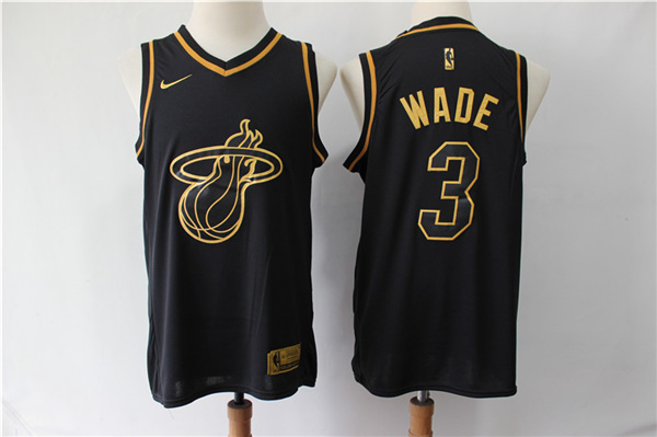 Men's Miami Heat #3 Dwyane Wade Black 2019 Golden Edition Stitched NBA Jersey