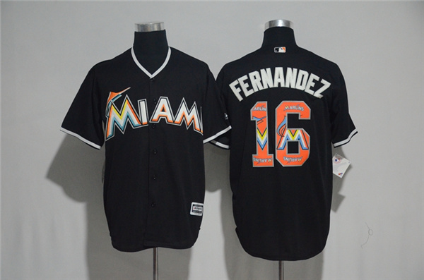Men's Miami Marlins #16 Jose Fernandez Black Team Logo Print Cool Base Stitched MLB Jersey