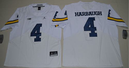 Wolverines #4 Jim Harbaugh White Jordan Brand Stitched NCAA Jersey
