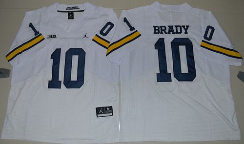 Wolverines #10 Tom Brady White Jordan Brand Stitched NCAA Jersey