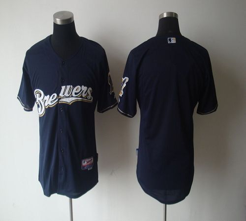 Brewers Blank Blue Cool Base Stitched MLB Jersey