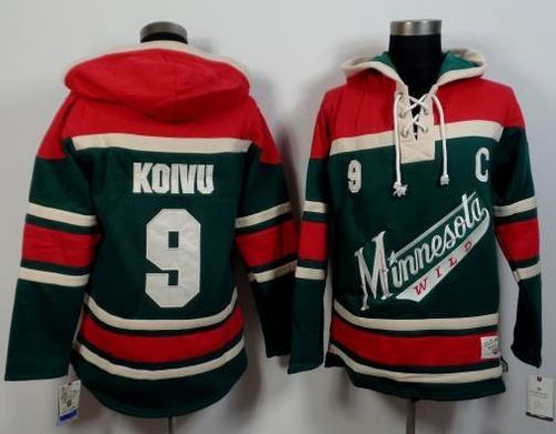 Wild #9 Mikko Koivu Green Sawyer Hooded Sweatshirt Stitched NHL Jersey
