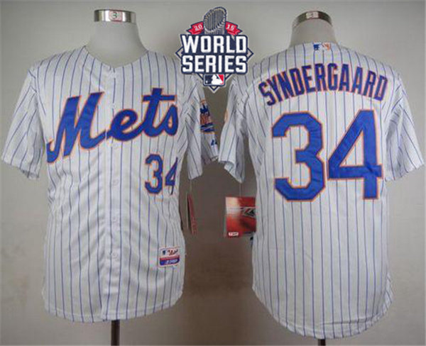 Mets #34 Noah Syndergaard White(Blue Strip) Home Cool Base W/2015 World Series Patch Stitched MLB Jersey