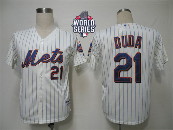 Mets #21 Lucas Duda Cream Blue Strip Alternate Cool Base W/2015 World Series Patch Stitched MLB Jersey
