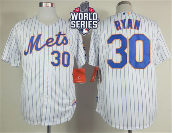 Mets #30 Nolan Ryan White(Blue Strip) Home Cool Base W/2015 World Series Patch Stitched MLB Jersey
