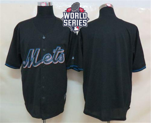 Mets Blank Black Fashion W/2015 World Series Patch Stitched MLB Jersey