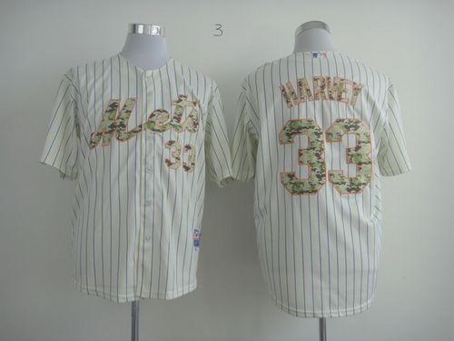 Mets #33 Matt Harvey Cream(Blue Strip) USMC Cool Base Stitched MLB Jersey
