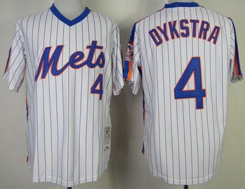 Mitchell and Ness Mets #4 Len Dykstra White Blue Strip Stitched MLB Jersey