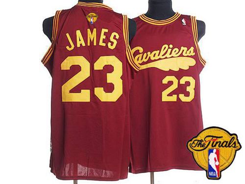 Mitchell and Ness Cavaliers #23 LeBron James Red Throwback The Finals Patch Stitched NBA Jersey
