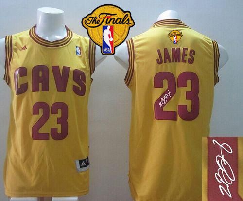 Revolution 30 Autographed Cavaliers #23 LeBron James Yellow Alternate The Finals Patch Stitched NBA Jersey