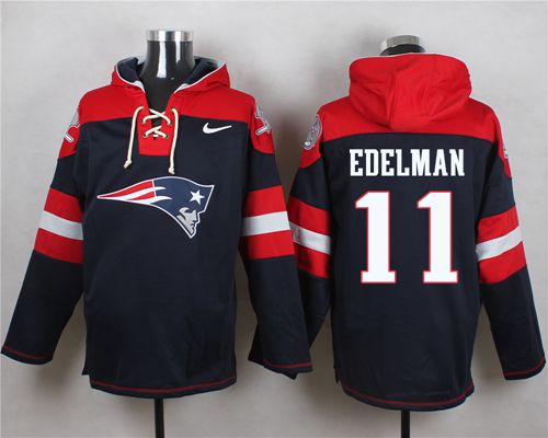 Nike Patriots #11 Julian Edelman Navy Blue Player Pullover NFL Hoodie