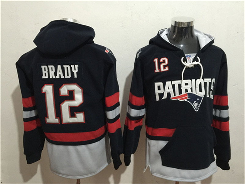 Men's New England Patriots #12 Tom Brady Blue All Stitched NFL Hooded Sweatshirt