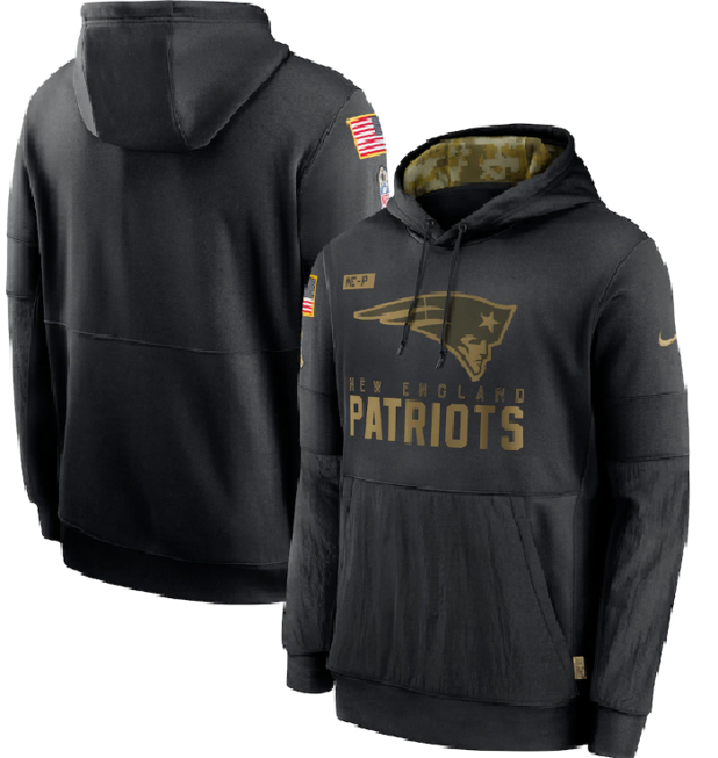Men's New England Patriots 2020 Black Salute to Service Sideline Performance Pullover Hoodie