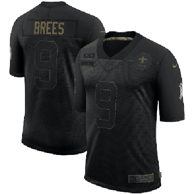 Men's New Orleans Saints #9 Drew Brees 2020 Black Salute To Service Limited Stitched Jersey
