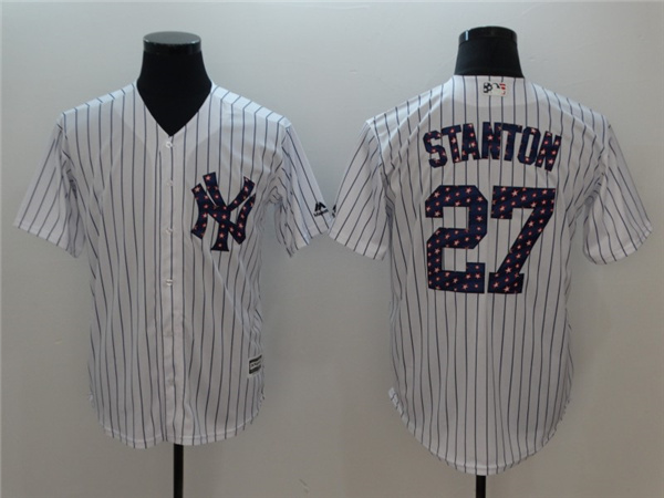 Men's MLB New York Yankees #27 Giancarlo Stanton White 2018 Stars & Stripes Cool Base Jersey