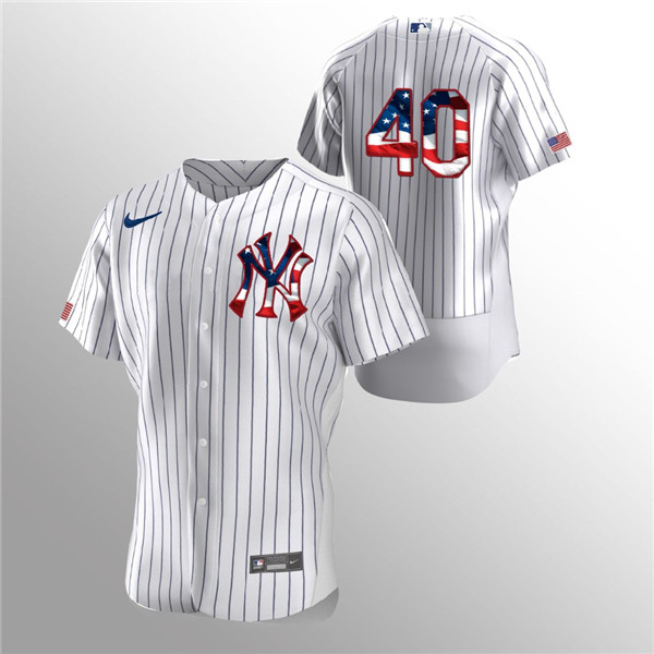 Men's New York Yankees #40 Luis Severino White 2020 Stars & Stripes Flex Base Stitched Jersey