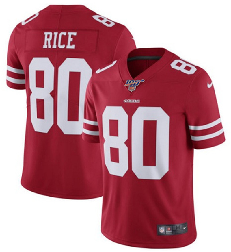 Men's San Francisco 49ers #80 Jerry Rice Red 2019 100th season Vapor Untouchable Limited Stitched NFL Jersey
