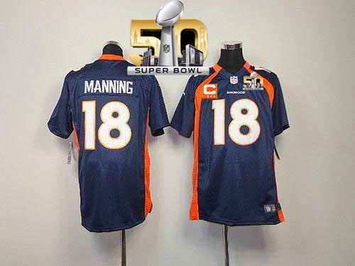 Nike Broncos #18 Peyton Manning Blue Alternate With C Patch Super Bowl 50 Youth Stitched NFL Elite Jersey