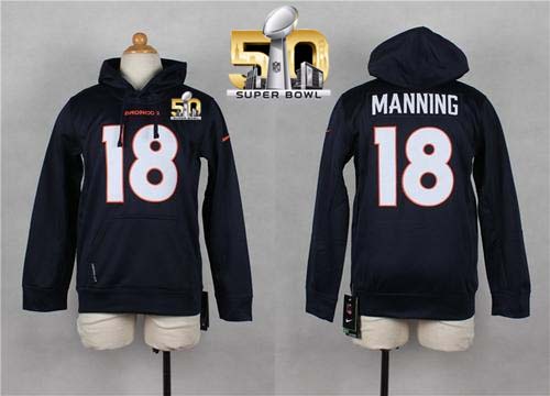 Nike Broncos #18 Peyton Manning Navy Blue Super Bowl 50 Youth Pullover NFL Hoodie